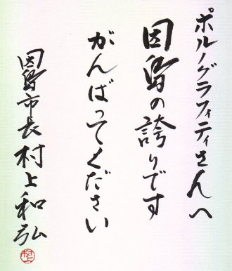 ファーストアルバム発売を記念して、 因島市長の村上和弘さんにお願いして写真を撮らせていただきました。 いろいろとお話もさせて頂きましたが、 皆さんの活躍を本当に嬉しく思っているそうです。 村上市長さん、本当にありがとうございました。